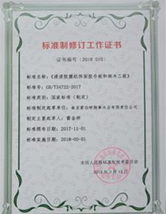2006年,公司率先推出了E0级饰面人造板,使得板材的甲醛释放量≤0.5mg/L